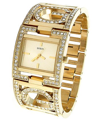 Looking for a watch to fit your unique personal style? This striking bracelet style with Swarovski crystal accents and G cutouts wins our vote. ? Analog function ? Mineral Crystal ? Stainless steel gold-tone case ? Gold-tone dial ? Stainless steel gold-tone bracelet with G cutouts ? Swarovski crystal accents throughout ? Removable links for easy self-sizing ? Water resistant ? 10 Year Limited Warranty Women's Accessories > Watches > Guess Watches